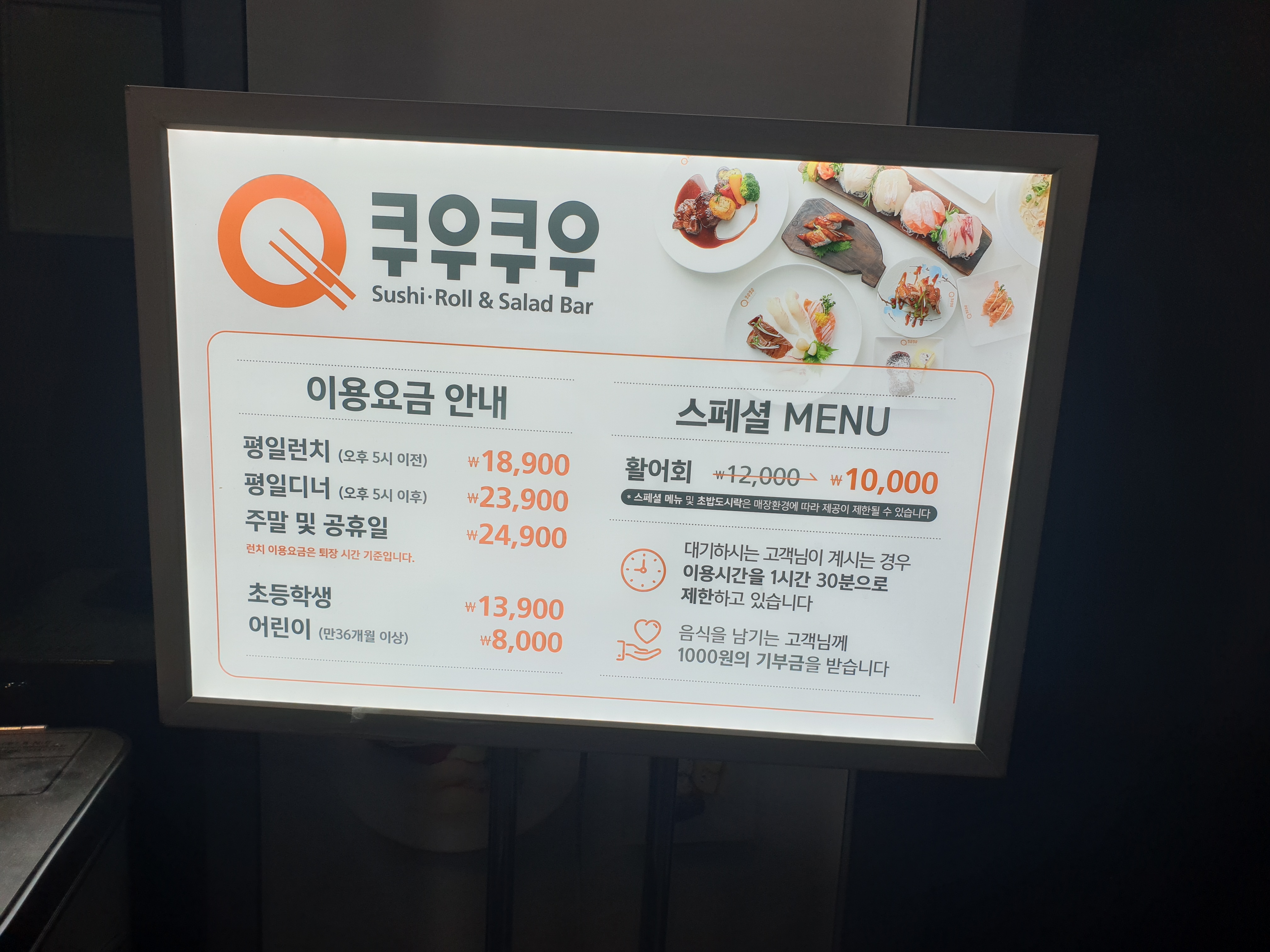 송천동에 위치한 쿠우쿠우는 스시 전문 뷔페집입니다.