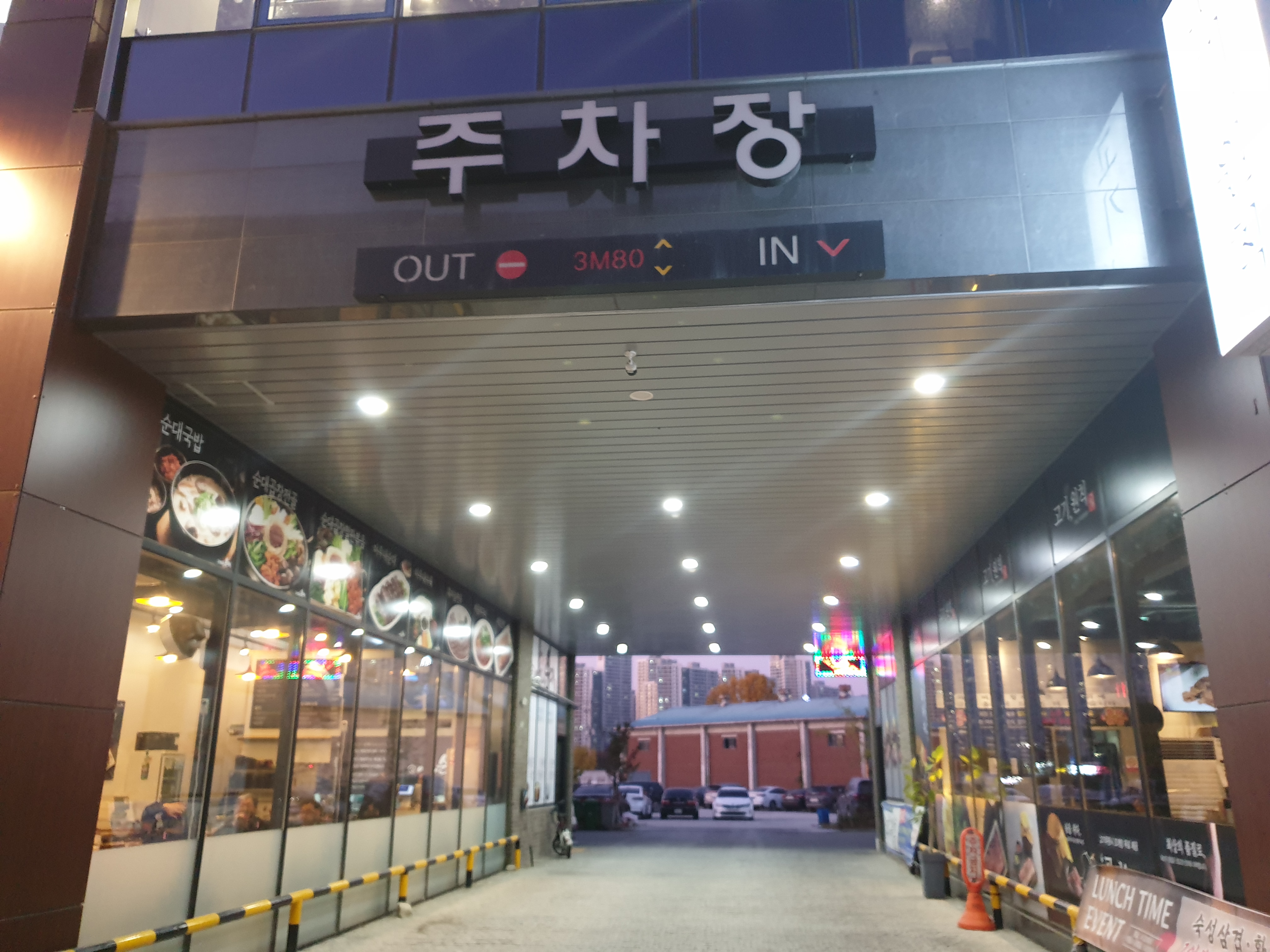 저도 처음에 주차장이 건물 사이에 있다고 해서 이해가 되지 않았는데 큰 건물 바깥쪽으로 해서 주차장 입구에 들어가는 것이 아니라 위 사진에서처럼 건물 중간에 이렇게 주차장 입구가 있습니다.