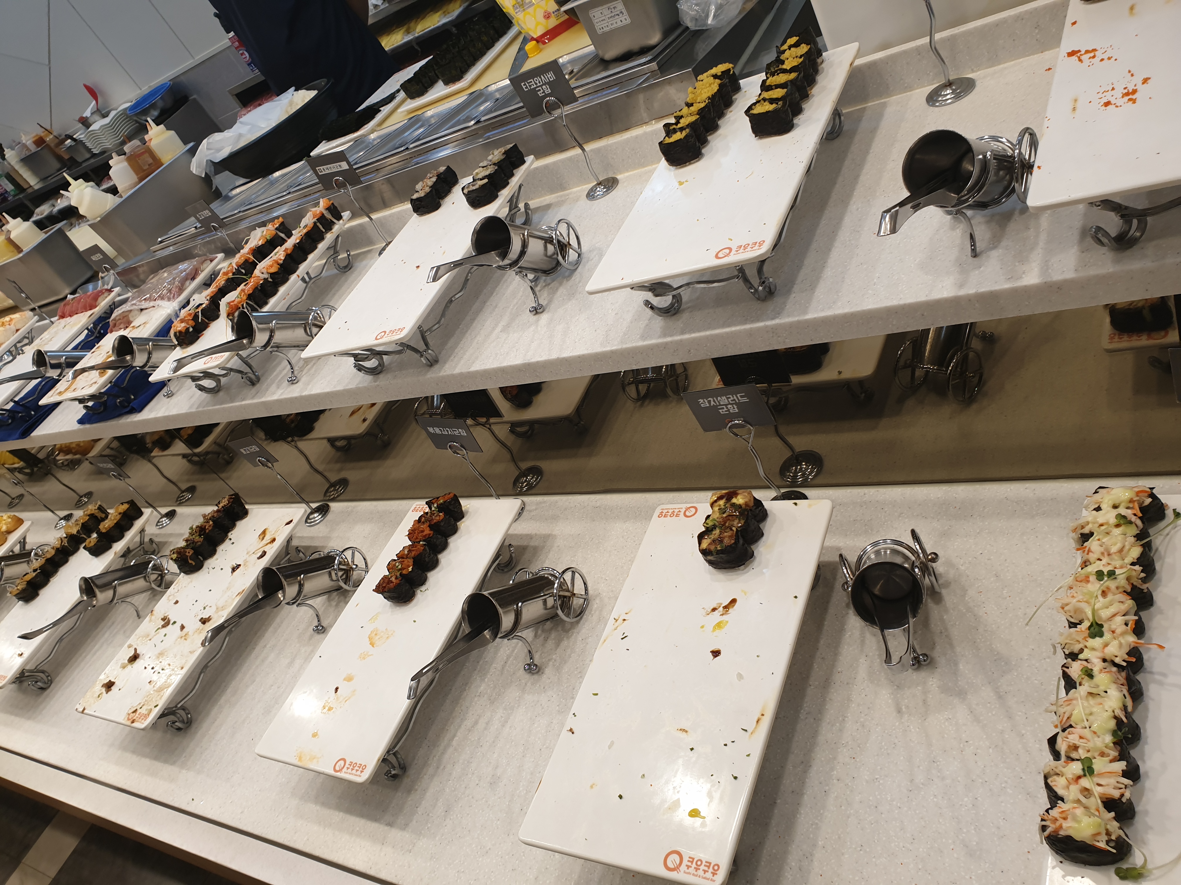 저 개인적으로 피자와 치킨과 같은 튀김류를 좋아해서 처음에는 스시를 한 접시 먹고, 바로 다음으로 튀김류를 담아서 먹었는데 피자는 두 조각을 가져왔는데 한 조각을 다 먹지 못했습니다.