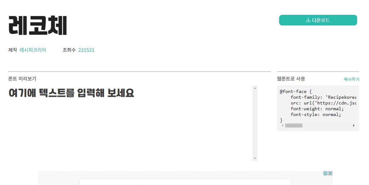 자신이 원하는 폰트가 보여서 눌렀을 때 다운로드 할 수 있는 페이지가 나옵니다.