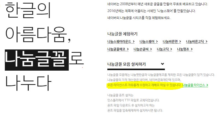 흔히 접할 수 있는 폰트는 네이버에서 제공하는 나눔글꼴 폰트입니다.