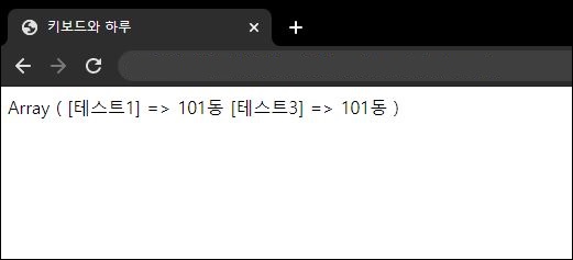 $testArray =[ "테스트1" => "101동" , "테스트2" => "102동" , "테스트3" => "101동" , "테스트4" => "102동" ];