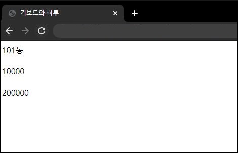 //dong과 calc_amt변수에 각각 101동과 계산될 값을 초기값으로 설정