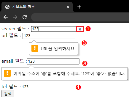 이 경우데도 만약 형식이 맞지 않으면 "이메일 주소에 @를 포함해 주세요" 라는 메시지가 표시되는 것을 확인하실 수 있습니다.