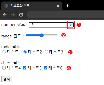 number 타입 : 이 타입으로 설정하면 마우스 커서를 올리면 위아래로 보이는 버튼이 보이고 텍스트나 특수 문자는 입력이 안되고 오직 숫자만 입력됨