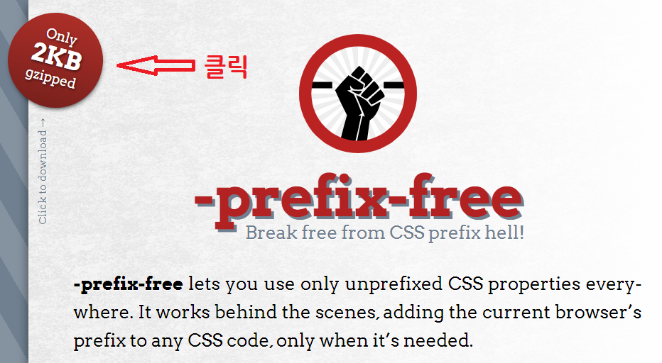 예전에 웹페이지를 만들 때 -webkit-transform , -moz-transform , -o-transform , -ms-transform, transform .... 이런식으로 해서 작업을 했었거든요 이것을 왜 써야 하는지에 대한 생각도 없이 다른 곳에 있는 것을 복사해서 쓰다보니깐 정확한 이해가 없었습니다. 저도 이번 블로깅을 하면서 이것이 왜 나왔고.. 왜 써야하는지를 알게 되었습니다. 그리고 이것을 더 쉽고 편하게 작업해주는 prefixfree.min.js 라는 자바 스크립트 파일도 있음을 알게 되었습니다. 이 파일을 이용하면 브라우저별 접두사를 쓸 필요가 없습니다. 필요하신 분들 다운로드 받으셔서 사용해 주면 좋을 거 같습니다.