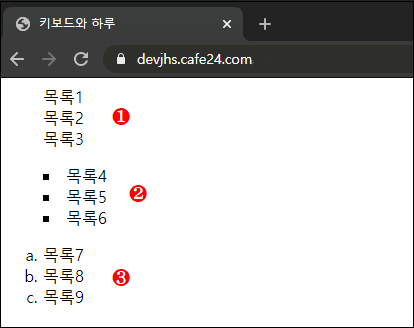 세번재는 lower-alpah라고 속성을 지정하면 list-style-type을 lower-alpha로 지정한 것과 같이 됩니다.