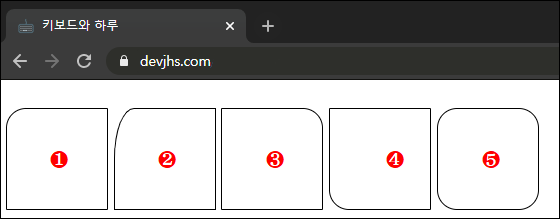 border-top-left-radius를 20px 50px로 지정을 하게되면 가로는 20px 크기로 세로는 50px 크기로 모서리를 둥글게 합니다.