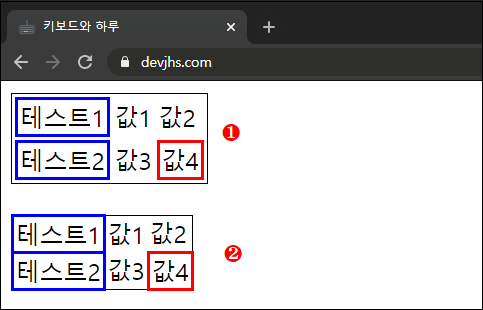 이 속성값을 이용해서 표를 그리게 될 때 특정 셀에 대해 테두리를 그리는 것을 하고 싶을 때는 위와 같은 collapse로 설정해 주시면 됩니다.