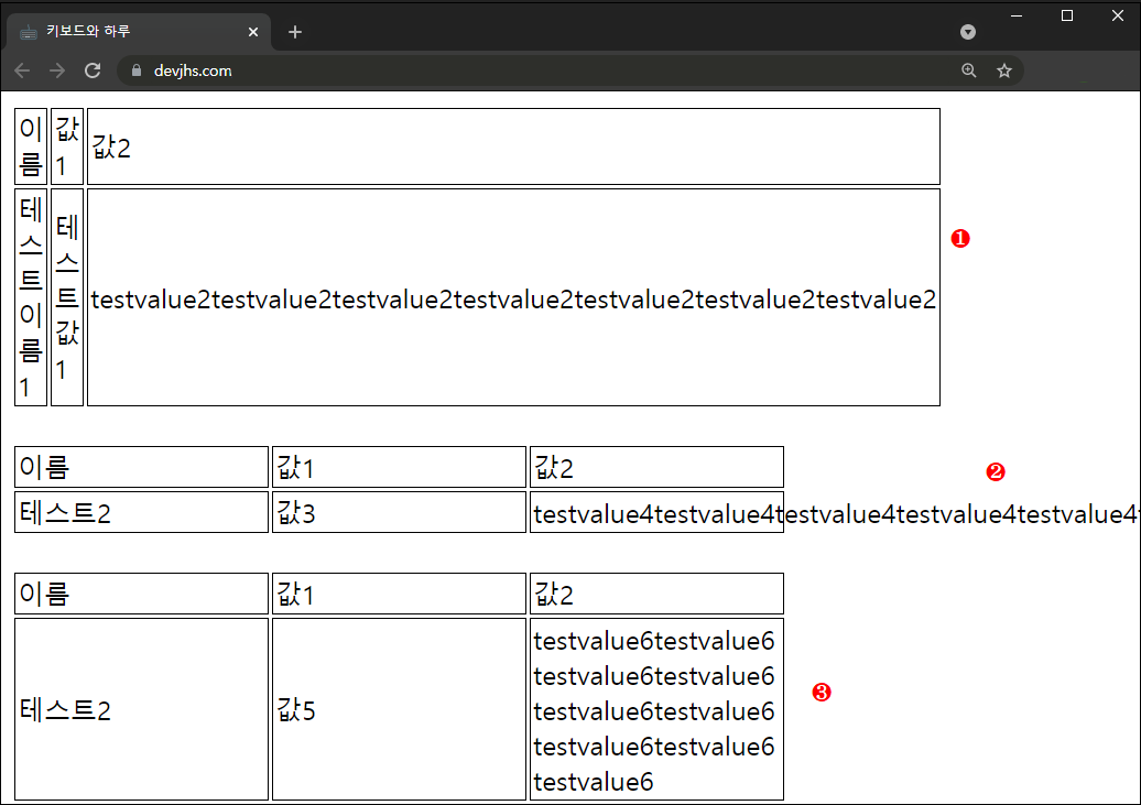 table-layout는 표에서 내용을 입력했을 때 width가 지정된 상태에서 콘텐츠 내용이 길어질 때 셀 안에 있는 내용에 따라 너비를 변하게 할지 , 고정시킬 것인지를 정해주는 속성