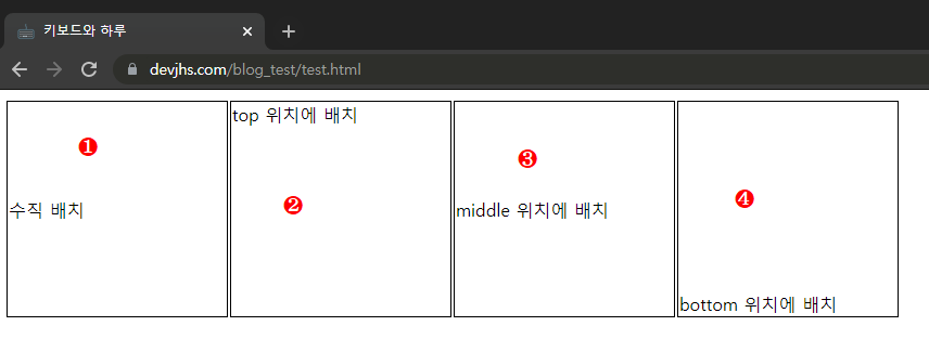 | bottom | 셀의 아래쪽 가장자리에 내용 아랫부분을 맞춤 |