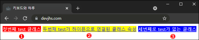 만약에 두번째 클래스의 속성 값이 b-test가 아니라 abc-test라고 한다고 하면 a로 시작을 하기 때문에 위에 있는 스타일이 적용되는 것입니다.