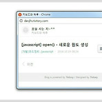 1. open() - 역할 새로운 window를 만들어 줌 ◈ 사용형식 open( URL , 원도 이름 , 창 설정 ) 2. open() - 창 설정 값옵션설명입력 값 height높이 값 width 넓이 값 location 주소 입력창 유무 yes , no menubar 메뉴 유무yes , noresizable 화면 크기 조절 가능 여부 yes , no status 상태 표시줄 유무 yes , no toolbar 상태 표시줄 유무 yes , no 3. open() - 예제 ◈ 코드 123456789$(document).ready(function () { window.open('http://devjhs.tistory.com','child','width=500,height=300,toolbar=no'); }..